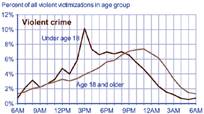 - Juveniles are at the highest risk of being a victim of violence between2 p.m. and 6 p.m. And the peak hour for juvenile crime is from 3 p.m. to 4 p.m., the first hour that most students are dismissed from school.
